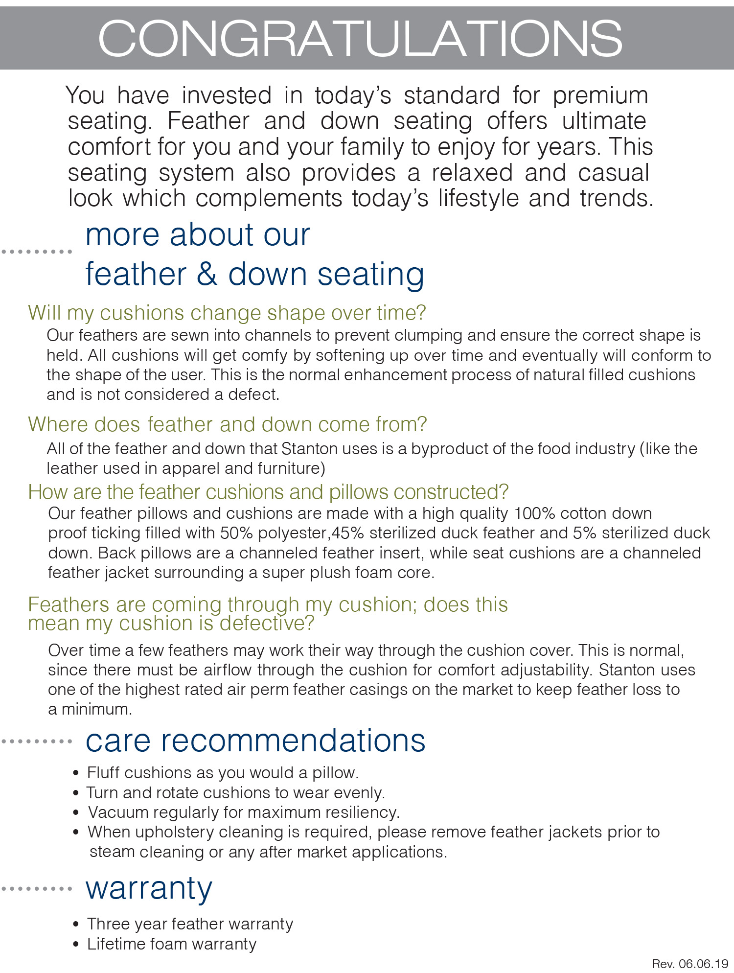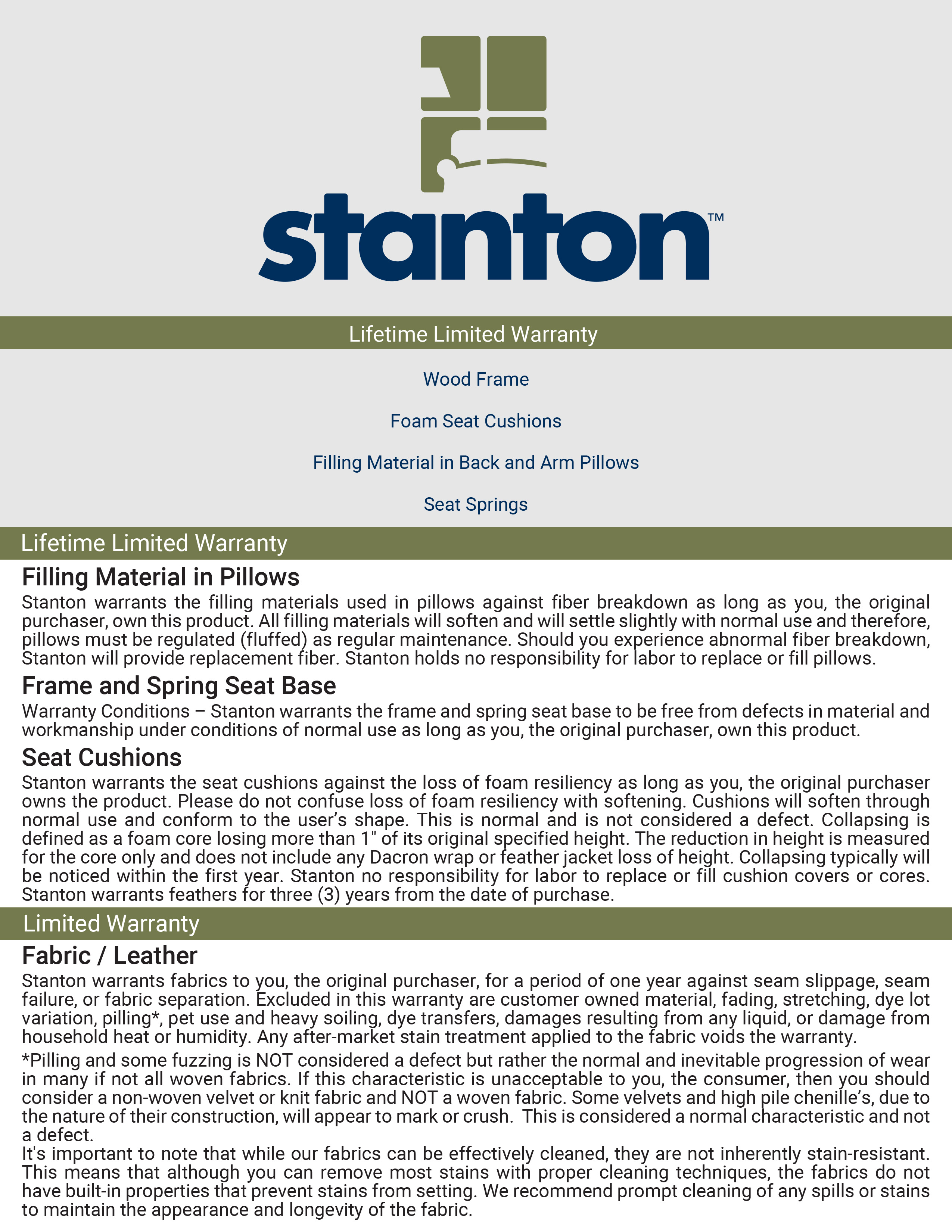 Feather Seating Warranty